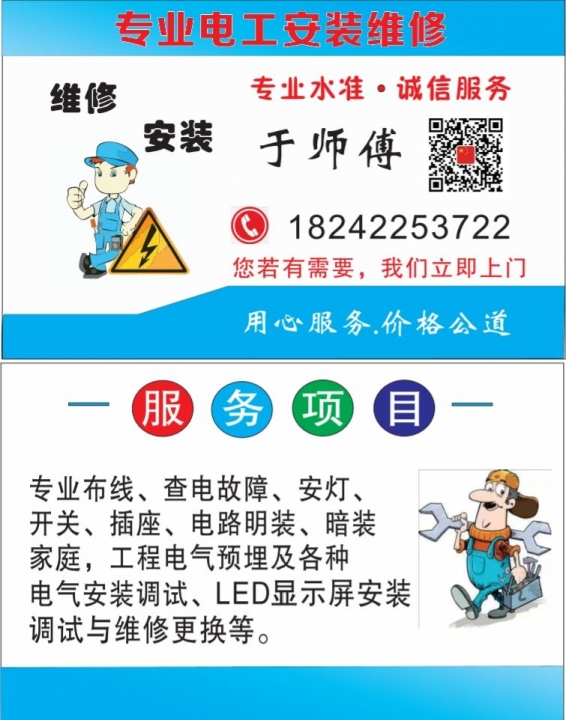 家庭电路维修!查验故障!维修更换灯,开关,插座等电气设备元件!门头牌匾显示屏维修调试与更换!